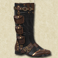 Questi stivali in pelle sono stati pensati per resistere anche ai viaggi più lunghi ed insidiosi: la suola è spessa e riporta un tacco, molto utile nei terreni fangosi, ma non è adatta per territori rocciosi o ghiacciati. Lungo tutti gli stivali sono state inserite delle comode tasche in grado di contenere piccoli oggetti e fialette, così da tenerli sempre a portata di mano.