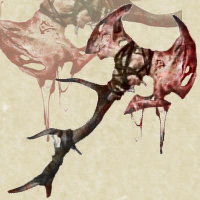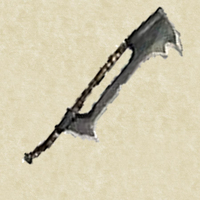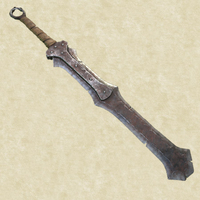 Filo singolo, alle volte anche scheggiato, ma molto pesante con un piccolo occhiello in cima. E' una lama particolarmente spessa e grossolana come da forgia orchesca. Impugnatura in legno conficcato alla fine della lama e stretto da bende di pelle. Il che ne fa una lama rozza, ma particolarmente spaventosa.