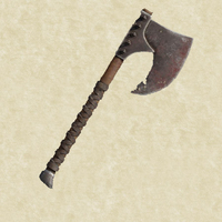 In orchisch "Ascia da guerra" è un'arma da una mano e mezza. La testa ha due punti d'aggancio con il manico lasciando spazio per un punto di presa inferiore e uno centrale. La testa invece ha una lama irregolare ma affilata con un incavatura per lasciare spazio ad un'altra mano. Il manico è coperto, lì dove è visibile, da strisce di pelle.