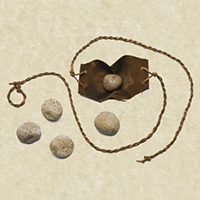 Arma da lancio estremamente rudimentale, si presenta composta da una sacca di pelle atta a contenere un proiettile (che può essere di svariati materiali, come pietra, piombo, terracotta e oggetti di fortuna), legata a due lacci. Il proiettile, che può percorrere lunghe distanze, è capace di causare danni da perforazione.