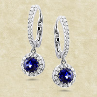Orecchini impreziositi da zirconi applicati all'intera struttura esterna. Al centro acquamarina. Base argento.