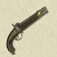 La cassa in legno scurito, presenta una canna in ferro con decorazioni in ottone e acciarino a pietra focaia in ferro battuto. La canna corta è lievemente strombata alla bocca e rende la pistola particolarmente maneggevole. Le pistole ad avancarica necessitano di essere caricate inserendo il proiettile dalla cima dell canna, facendolo scorrere fino in fondo attraverso l'utilizzo dell'apposita bacchetta di caricamento. La polvere pirica va inserita nell'apposito alloggiamento, utilizzando una fiaschetta dosatrice, munita di apposito misuratore che blocca il foro di uscita della polvere dopo che è uscita la dose richiesta. Bacchetta e fiaschetta sono fornite in dotazione con questa pistola.