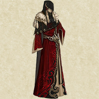Questo completo elegante lungo si compone di una giacca ornata sulle maniche che conferisce a chi la indossa un raffinato portamento. Adatta per serate importanti o per chi svolge mansioni di rilievo. Un medaglione di bronzo al petto, definisce ancor più la raffinatezza del capo indossato e potrebbe contenere piccoli oggetti celati allo sguardo altrui. A completare l'insieme, un paio di pantaloni di tessuto pesante e un paio di stivali in pelle nera, idonei alla vita cittadina.